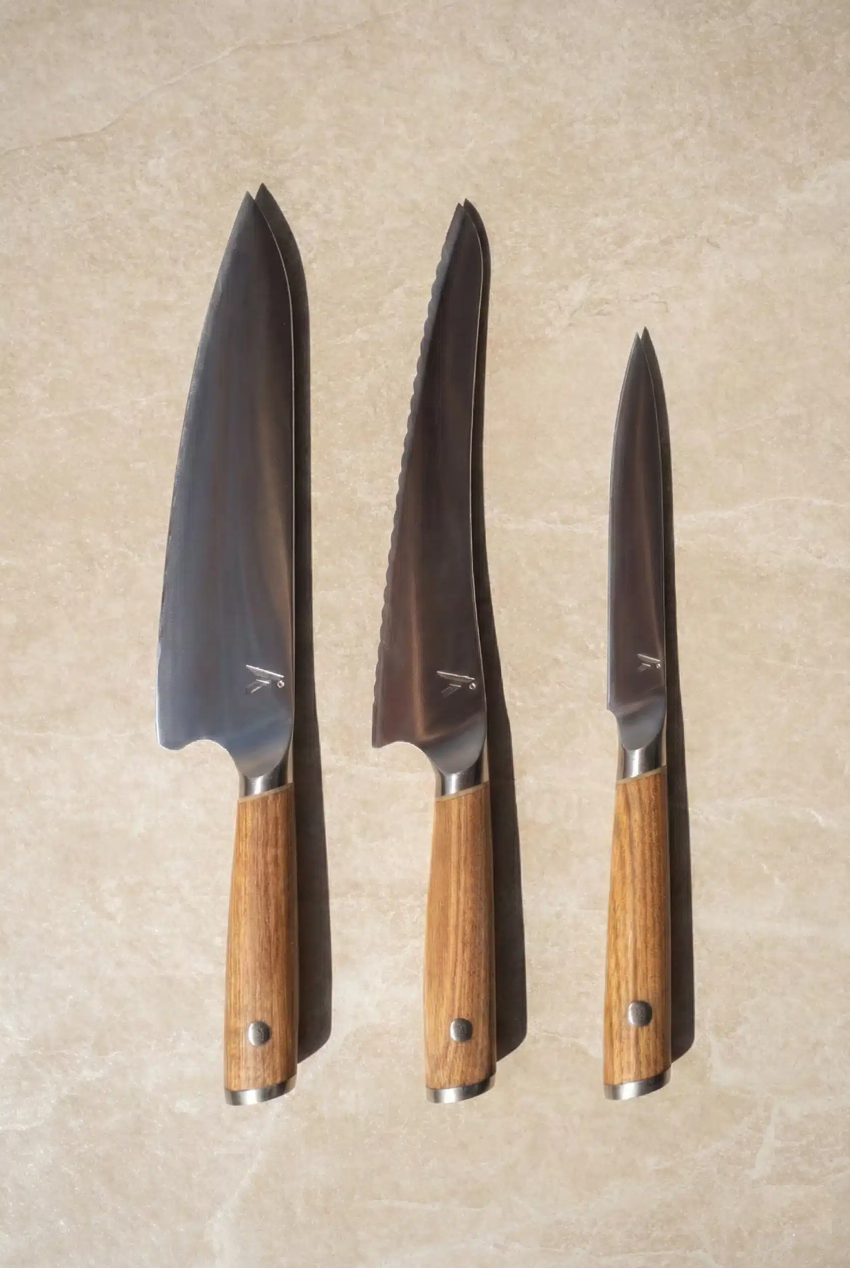 Met een heft van sebranohout, een lemmet van AUS-10 japans staal, een schuine krop en een verfijnd detail op zowel het heft als het lemmet zijn deze messen niet alleen een pareltje om te zien maar ook nog eens extreem scherp en duurzaam. 60 graden Rockwell aan hardheid en geslepen in een hoek van 15 graden voor extreem lang snijgenot en langdurige scherpte.
