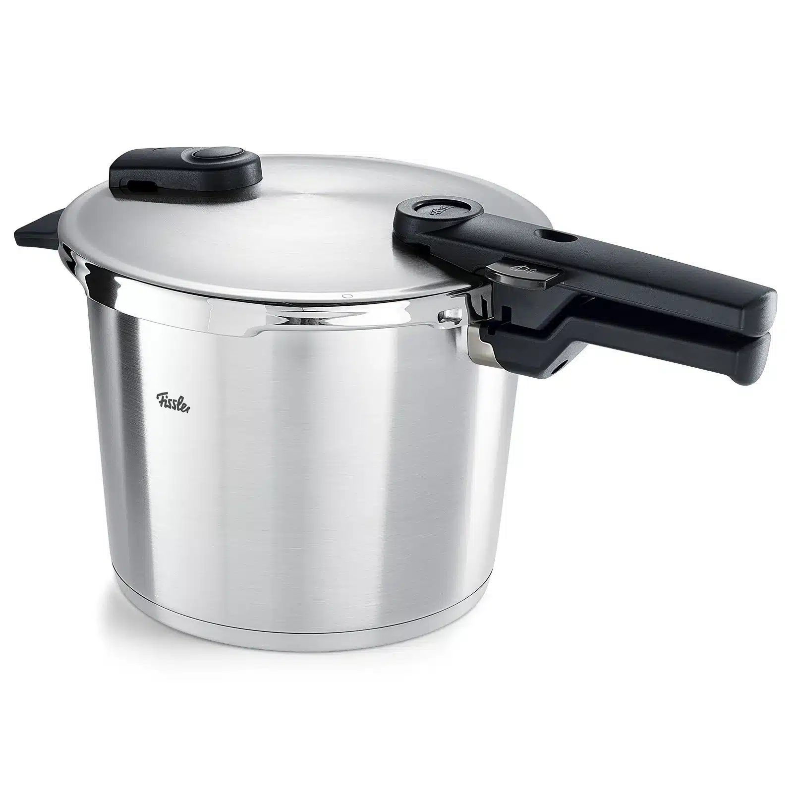 De Fissler VitaQuick Premium snelkookpan is een robuuste en praktische pan voor wie efficiënt en veilig wil koken. De pan is vervaardigd uit duurzaam roestvrij staal en voorzien van stevige kunststof grepen die prettig in de hand liggen. Dankzij het doordachte ontwerp met een duidelijke inhoudsaanduiding aan de binnenzijde en een afneembaar handvat is de pan eenvoudig in gebruik. De snelkookpan beschikt bovendien over een handig stoplichtsysteem dat aangeeft wanneer je de warmtebron moet bijstellen en een slotaanduiding die laat zien of de pan goed is gesloten.