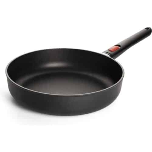Wie van koken houdt wil natuurlijk wel een goede hapjespan in huis en dat kan je wel aan Woll overlaten. Dit Duitse merk staat al decennia bekend om zijn oerdegelijke Duiste producten. Deze hapjespan uit de nieuwste serie van Woll: de Eco Lite induction QXR, is niet alleen prachtig om te zien, maar is bovendien duurzaam en milieubewust en volledig PFAS-vrij. De pannen zijn gemaakt van gerecycled gegoten aluminium en voorzien van een niet-giftige, non-stick Diamond QXR coating. De rand van de pan is zo gevormd dat uitschenken of afgieten geen enkel probleem is en er veilig gekookt kan worden. De steel van de pan is afneembaar en gemaakt van 50% herbruikbare materialen, dit zorgt er voor dat de pan ook in de oven gebruikt kan worden.